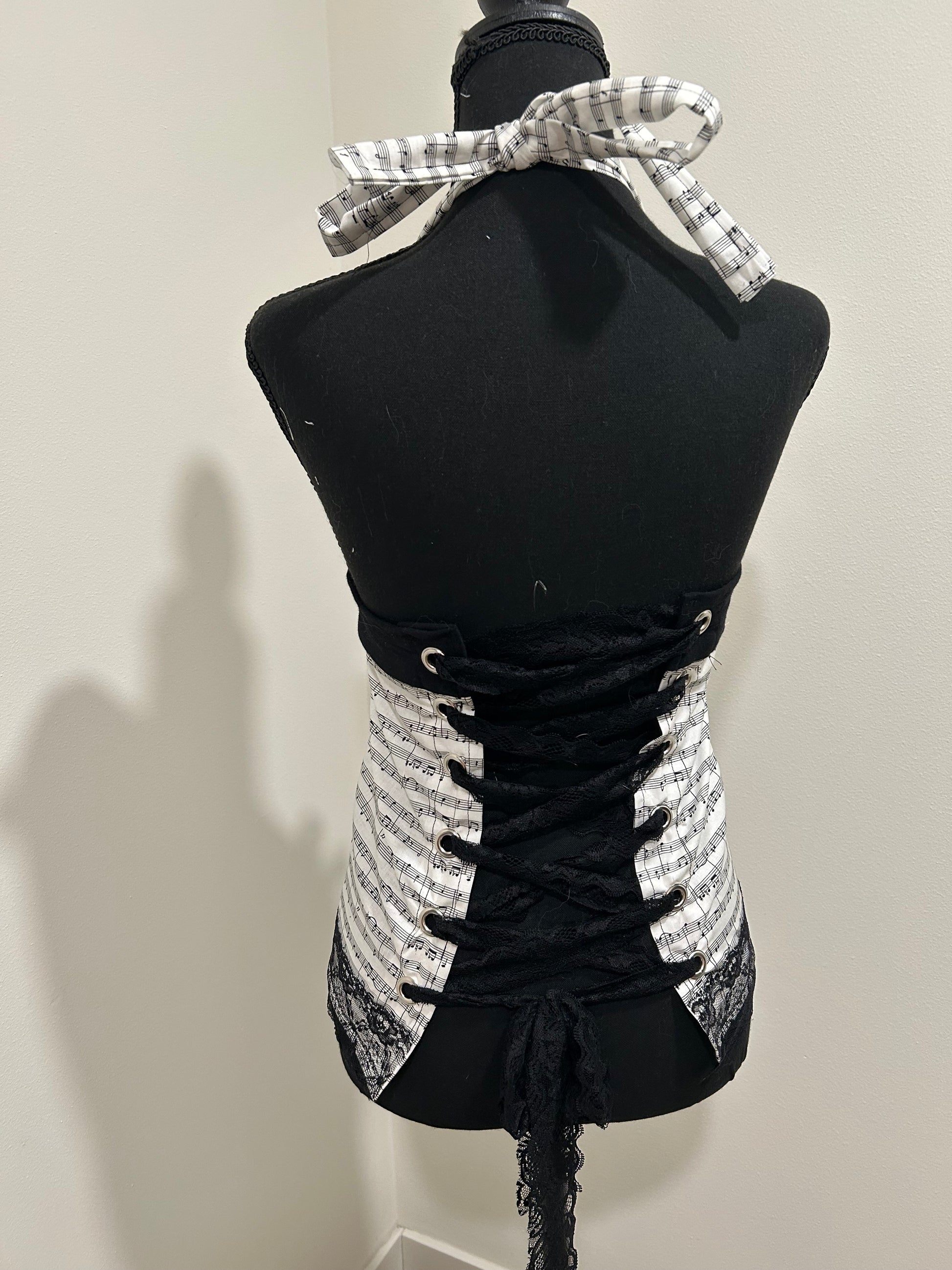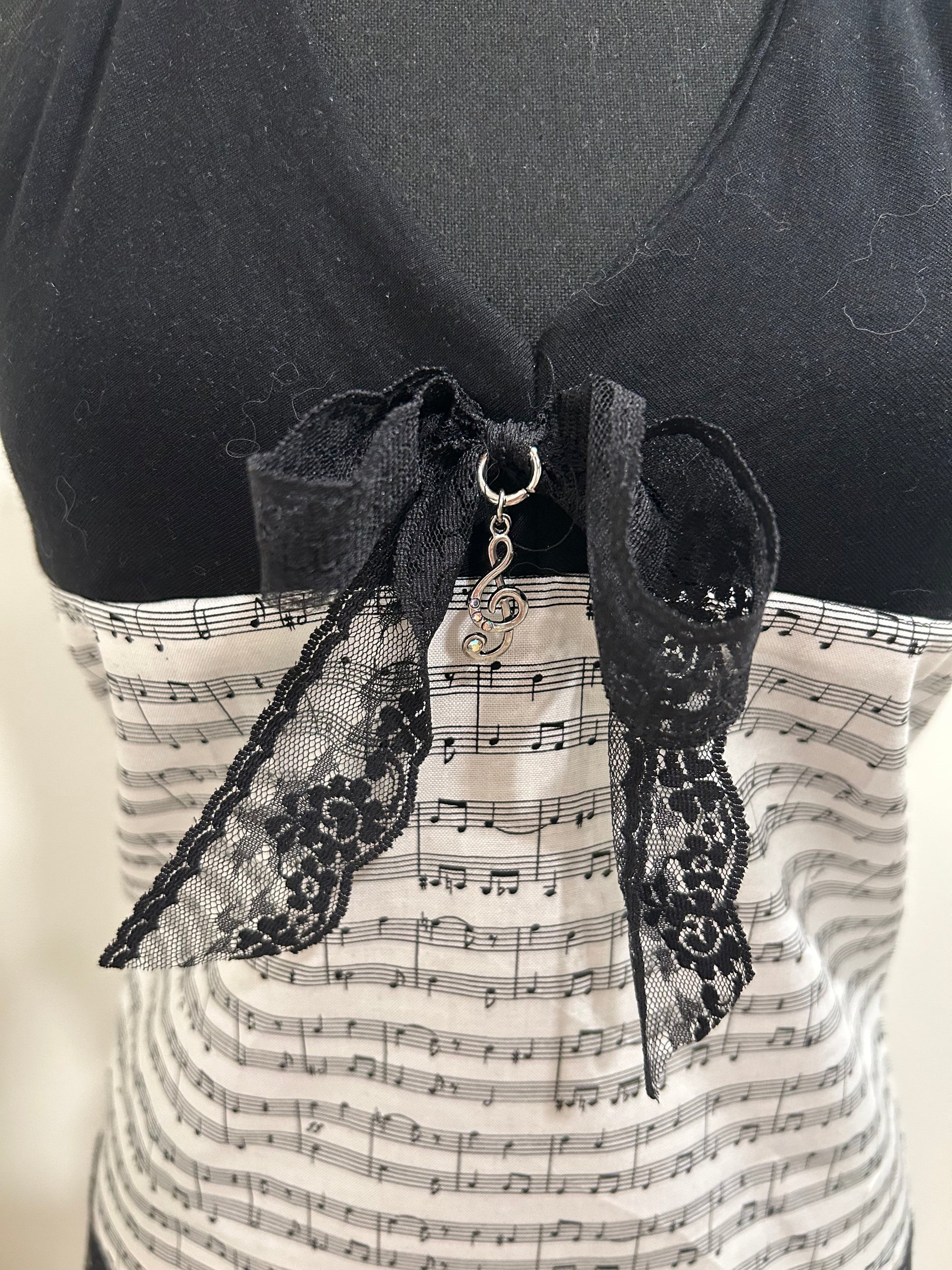 music note top design w black lace details